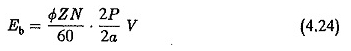EB es el EMF induce en el refuerzo debido a la rotación en el campo magnético uniforme a una velocidad constante N. La naturaleza de este EMF es oponerse a la tensión terminal y, por lo tanto, también se llama EMF. Las condiciones del circuito se representan en la Figura 4.47.